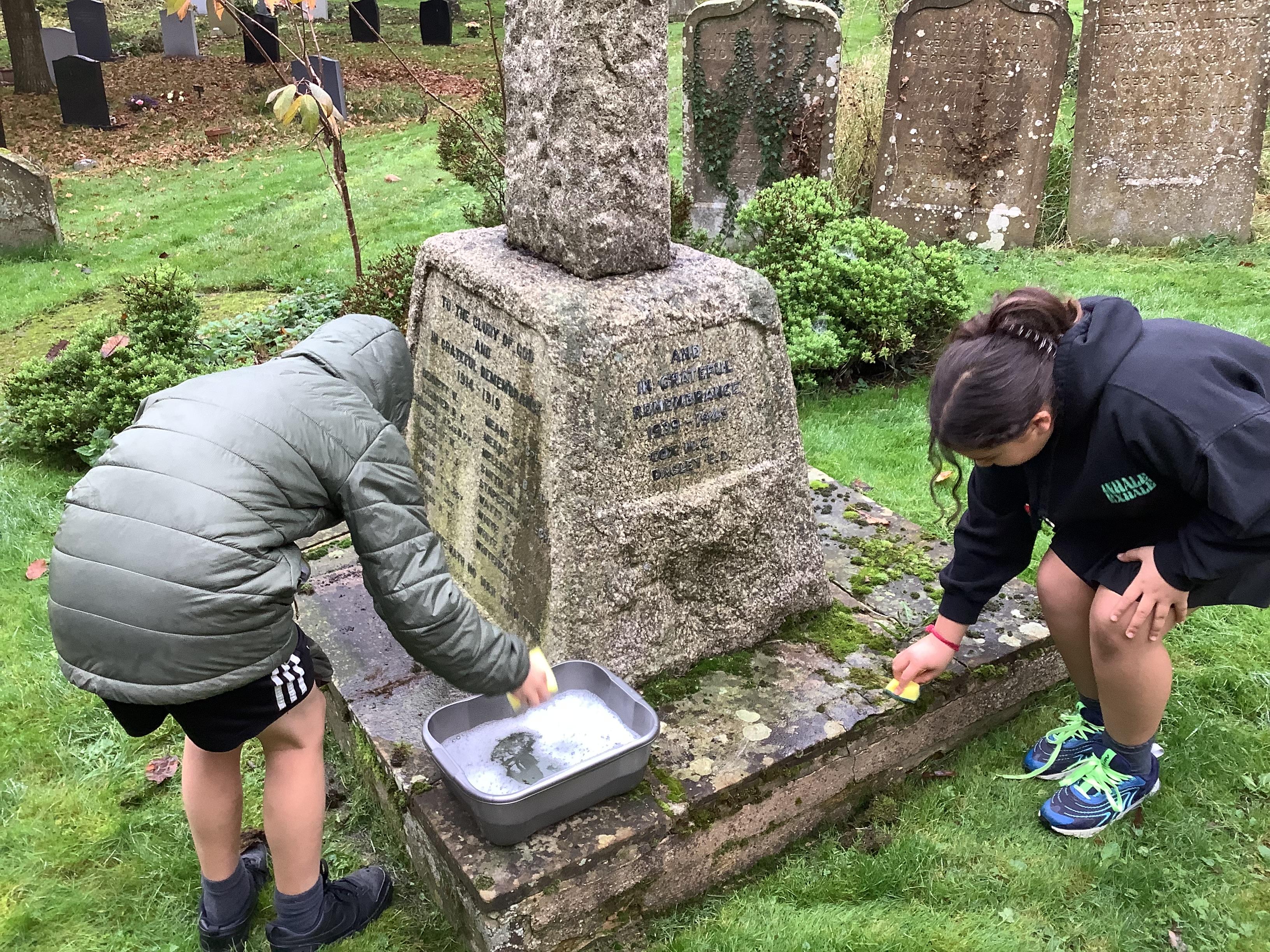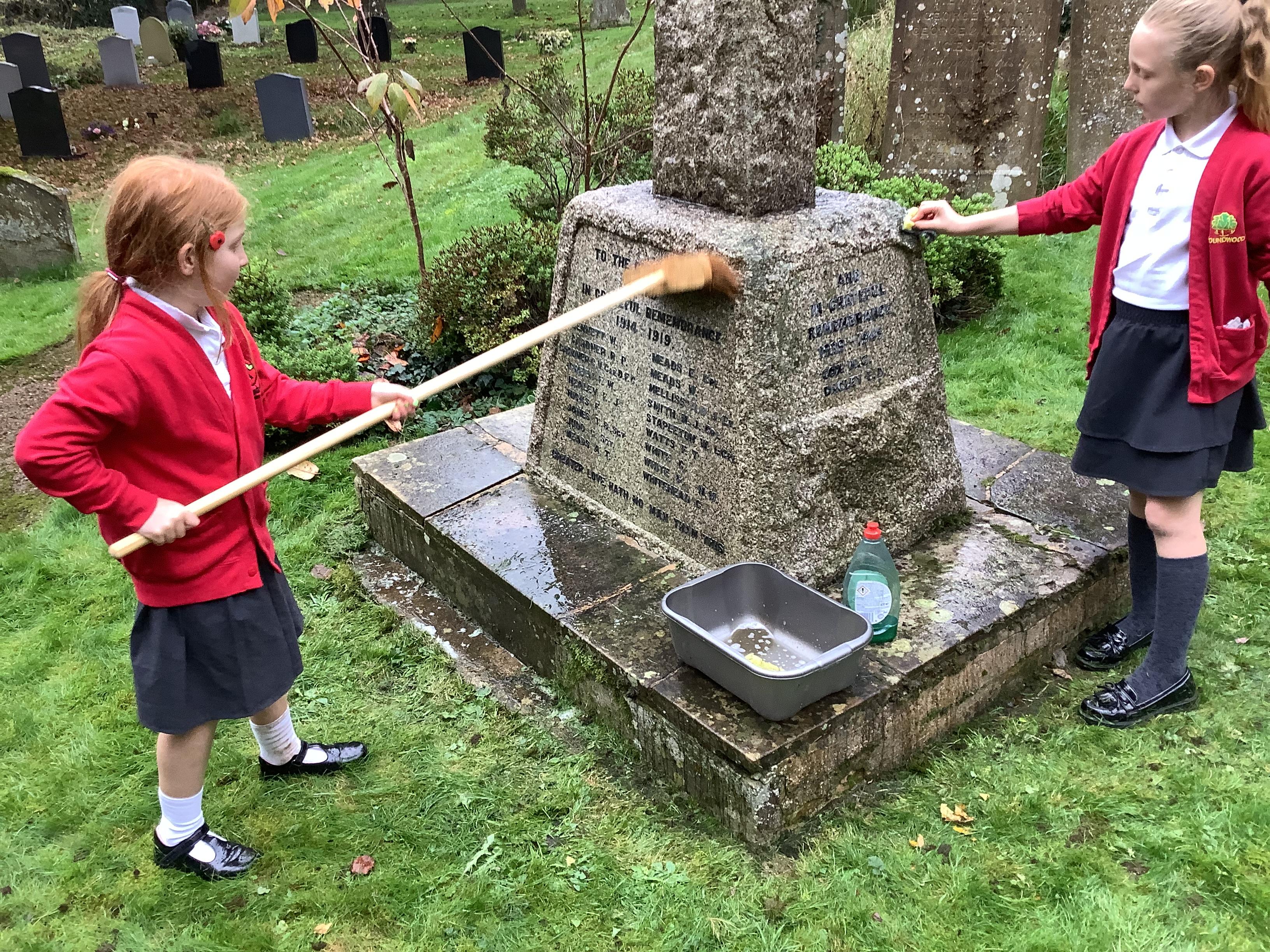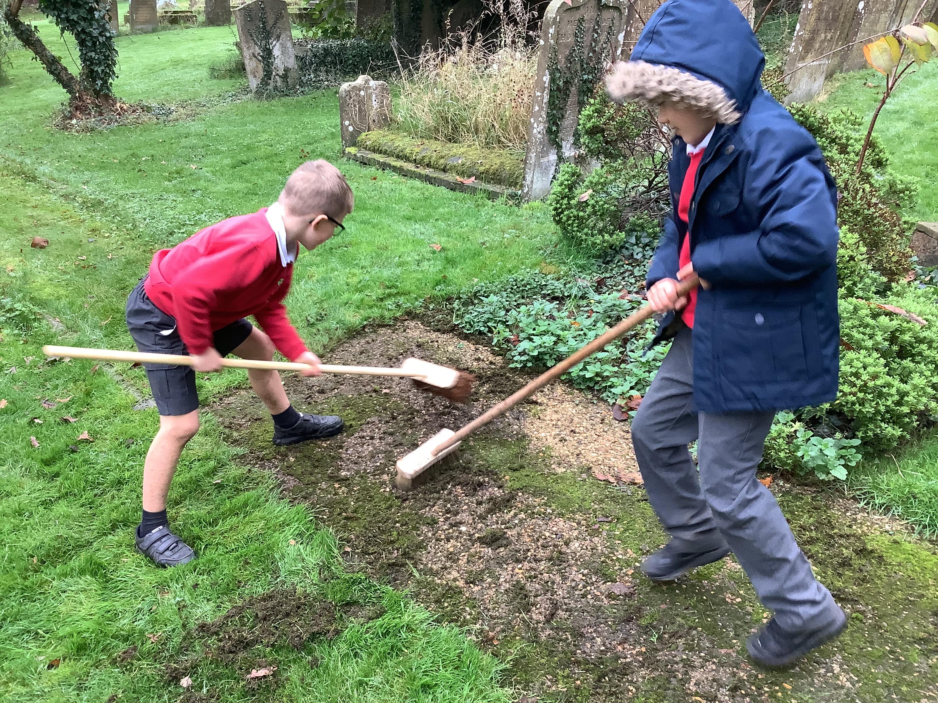 The School Council have been working on making connections with the local community this year. In aid of this, they got stuck in with cleaning the Remembrance Day war memorial and surrounding area ahead of the 11th November. The children swept the path, cleaned the monument and made sure that the path was not slippery for elderly members of the community coming to pay their respects. Their efforts were well-received throughout Gawcott, with many members commenting on how lovely the space looked, and how accessible it was.